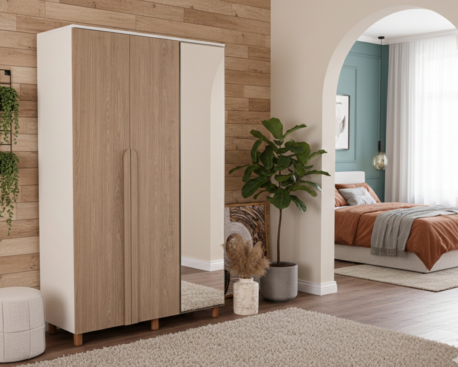 Krem gövde / 2 Kapak Meşe MDFLAM 1 Kapak aynalı |
