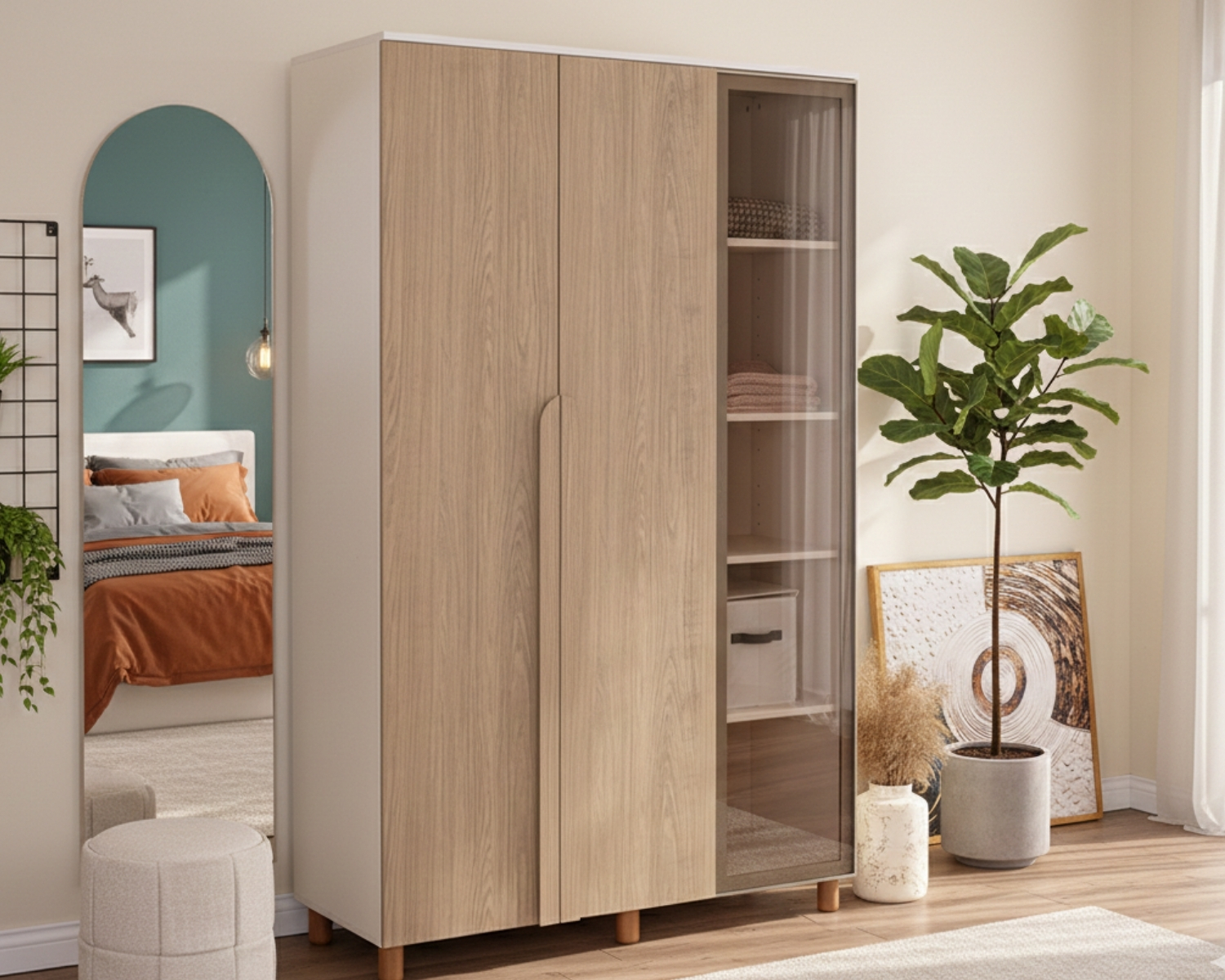 Krem Gövde / 2 Kapak Meşe MDFLAM 1 Kapak Camlı |