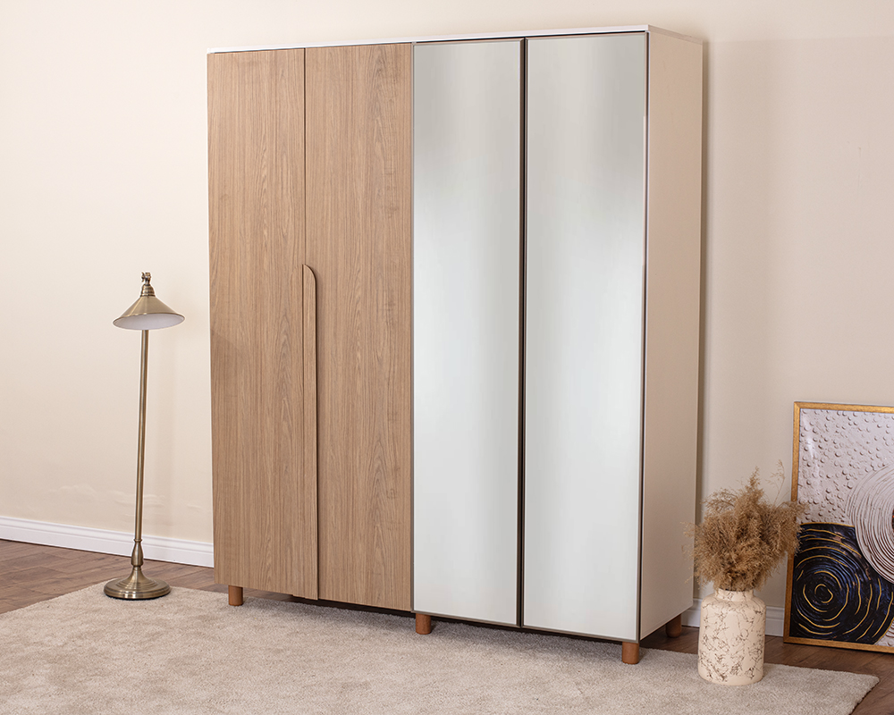 Krem Gövde / 2 Kapak Meşe MDFLAM 2 Kapak Aynalı |
