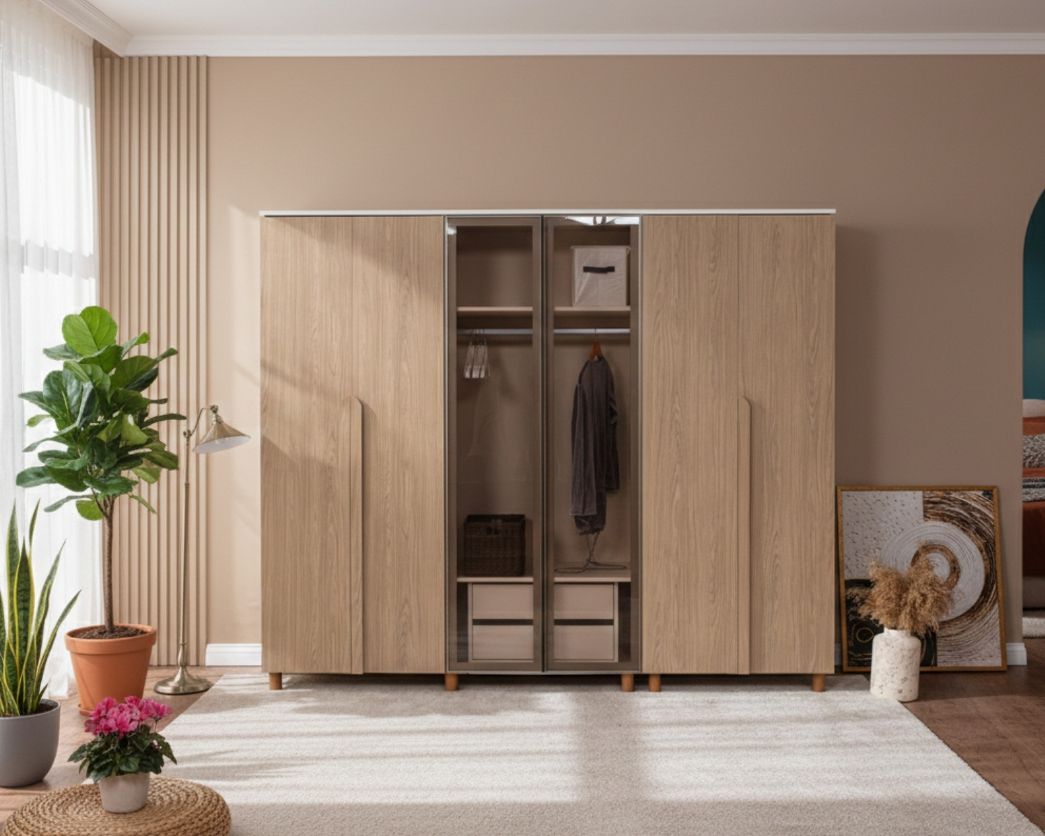 Krem Gövde / 4 Kapak Meşe MDFLAM 2 Kapak Camlı |