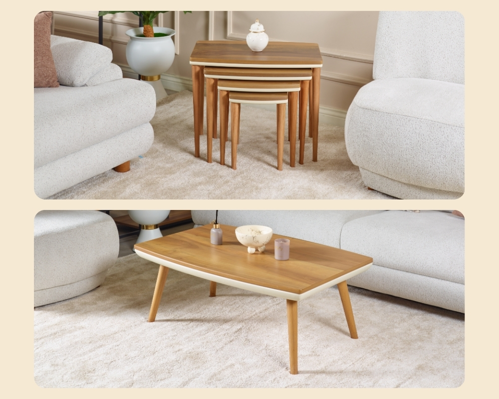 - Sehpa Malzemesi: Ceviz kaplama MDF, zarif ve şık bir görünüm sunar.